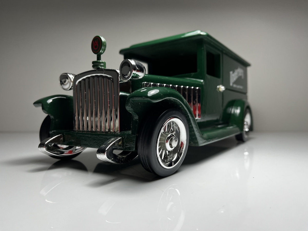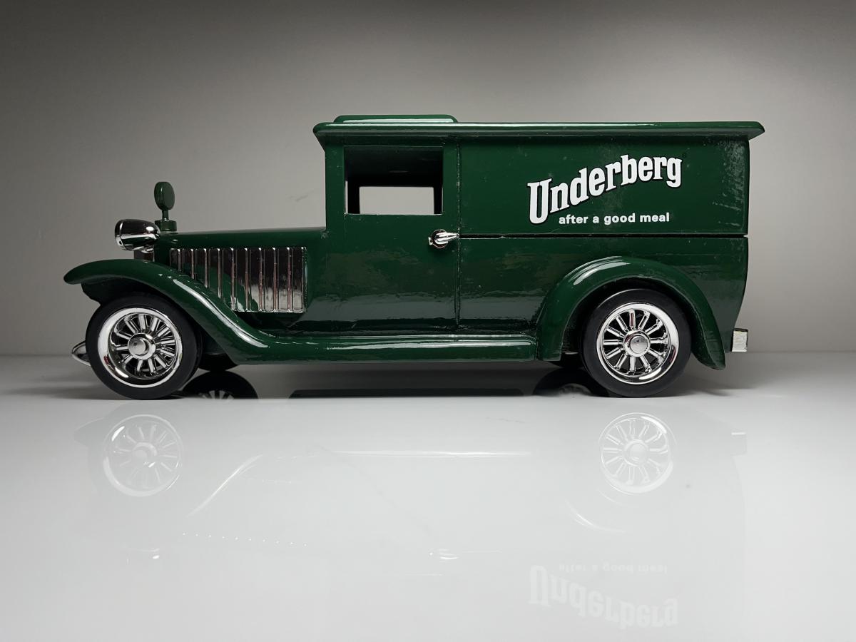 MADEIRA AAA000007 BARMEISTER UNDERBERG Underberg Herbal Model A bebida Underberg era entregue pelo "Underbeg Herbal Model" já na década de 1930. De longe o motorista anunciava sua chegada com uma buzina cuja melodia era tão cativante, que as pessoas assobiavam juntos. A partir dai começaram a encomendarem seu Underberg com a melodia Underberg. Miniatura inspirada em um Opel 1.31 Bussines Car, construído em 1937 com 24 cv/1278 cc de cilindrada e velocidade máxima de 80 Km/h. MADEIRA Modelo Alemão. 1937 Verde Escala mais proxima 1/18 (30 Cm).